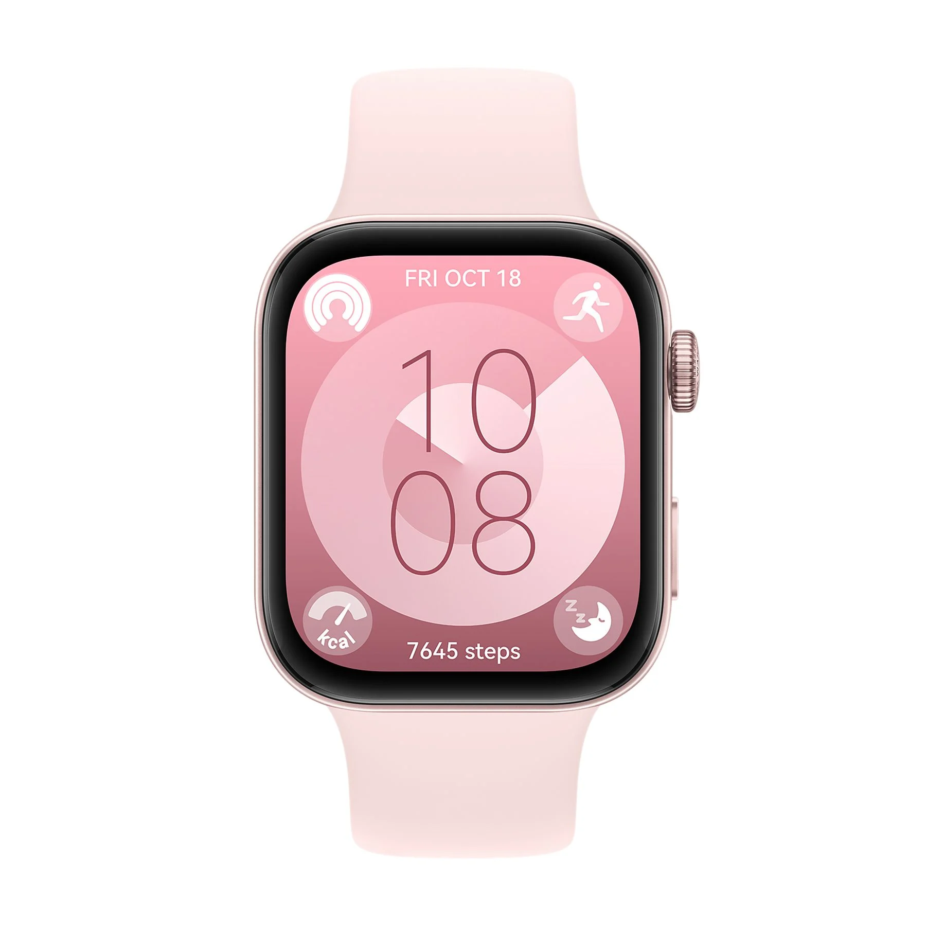 Con correa de fluoroelastómero, ligera y resistente al sudor, es perfecto para usar todo el día. Su diseño delgado y elegante en color rosa lo convierte en un smartwatch versátil para deporte, trabajo y ocio.