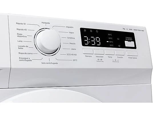 La OK OWM 7123 A INV es una lavadora de carga frontal con capacidad de 7 kg y velocidad de centrifugado de 1400 rpm. Incorpora motor Inverter, función vapor y 15 programas de lavado que permiten adaptarse a diferentes tipos de prendas. Es adecuada para el uso doméstico diario.